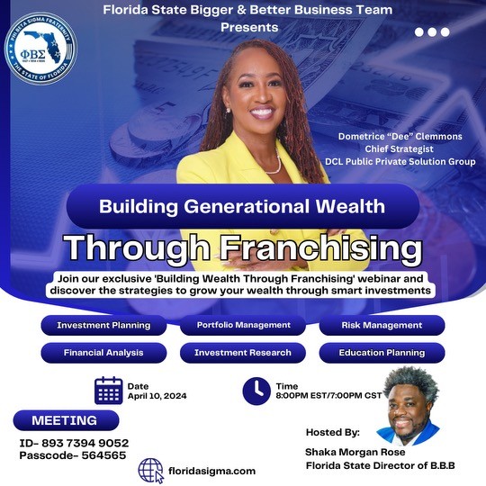 In this enlightening seminar, participants will discover the powerful potential of franchising as a pathway to creating lasting wealth.